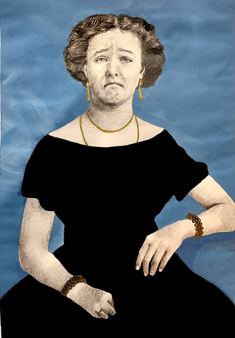 After years of painting portraits from curated selfies – all perfect teeth, false lashes, and dubious filtered charm – I needed a break from the tyranny of prettiness. This series is my antidote: a playful rebellion against the performative smile and the pressure to be appealing. Inspired by Victorian photographs where women look furious, tearful, deadpan, or gleefully grotesque, these works celebrate the unpolished and unbothered. “Antidote” was once a slur for an unattractive woman; here, it’s a sly badge of defiance.