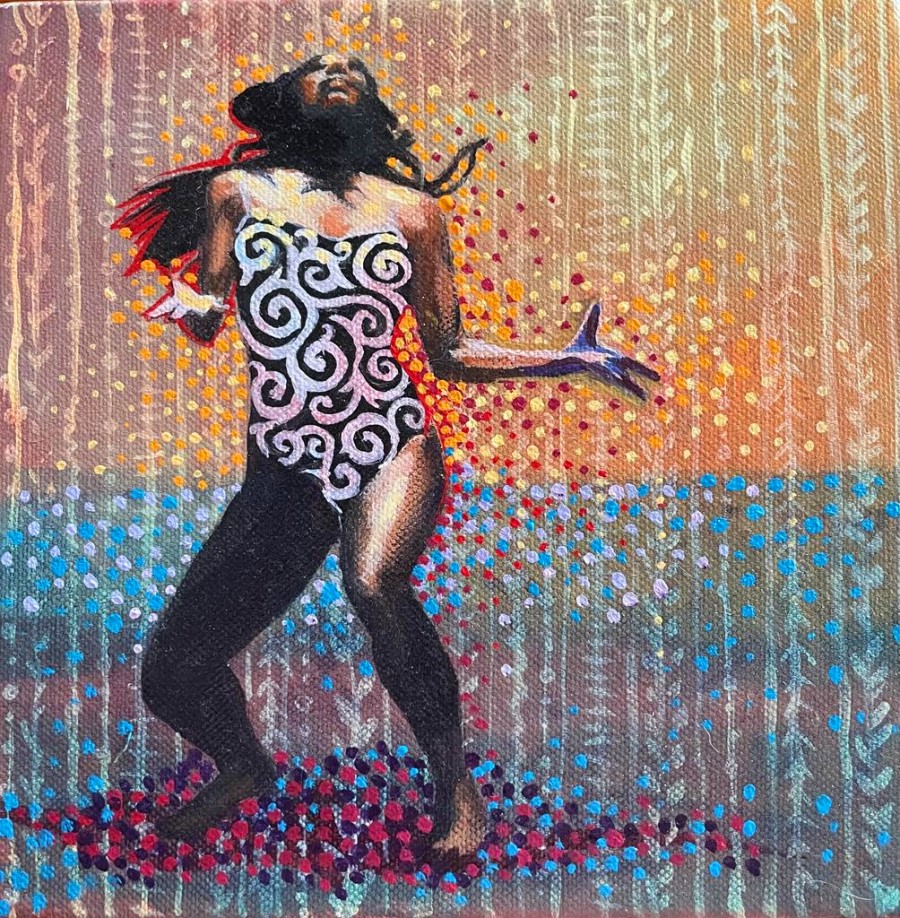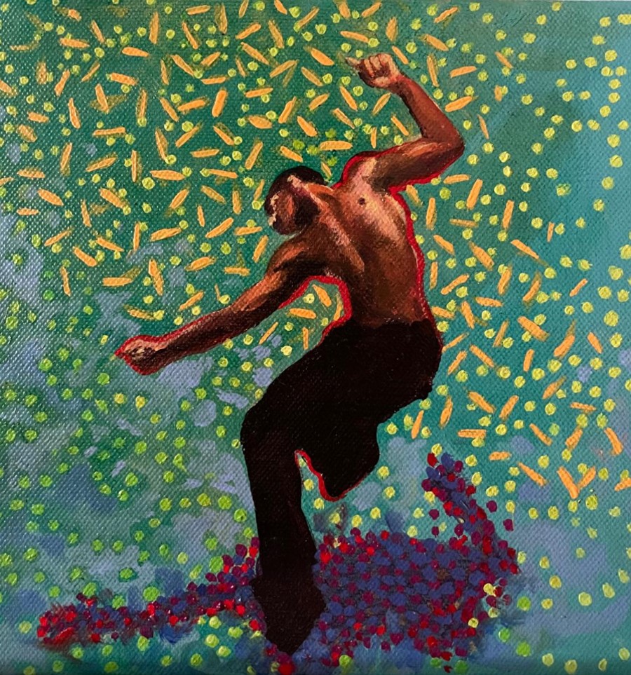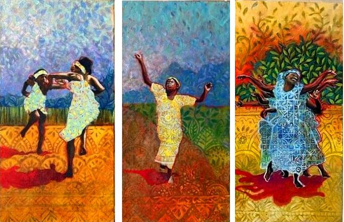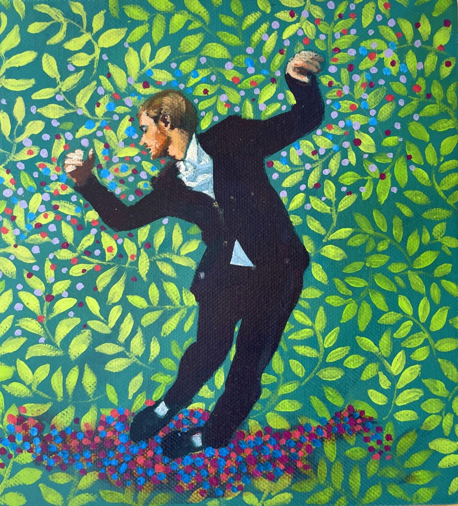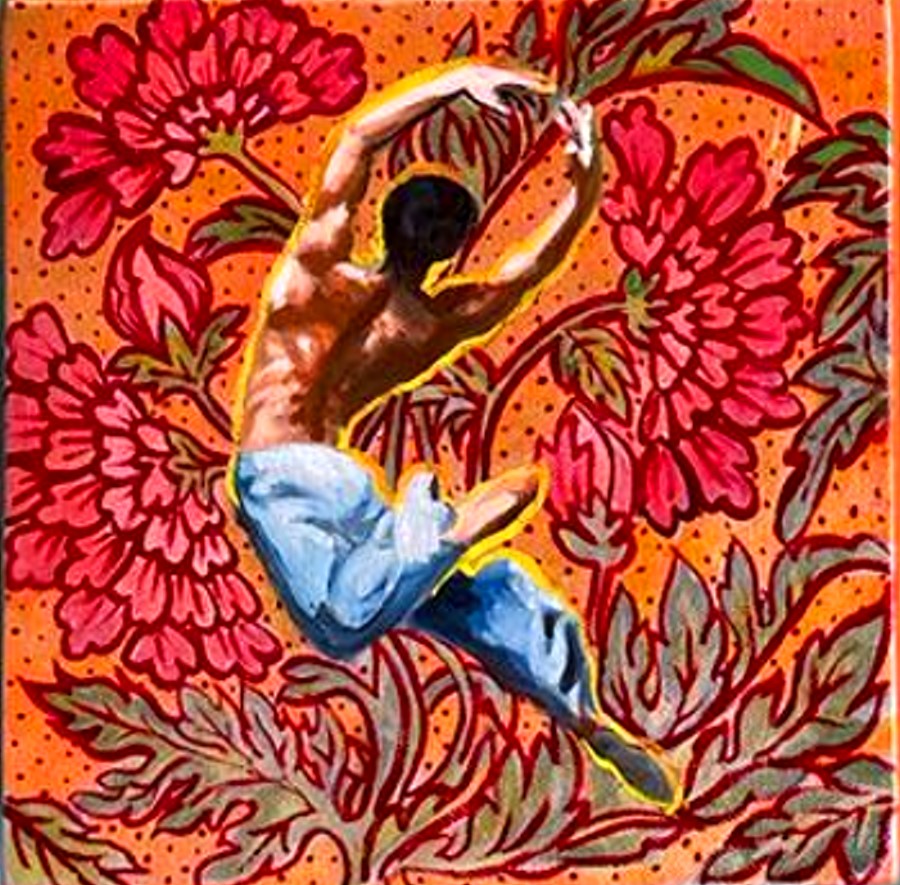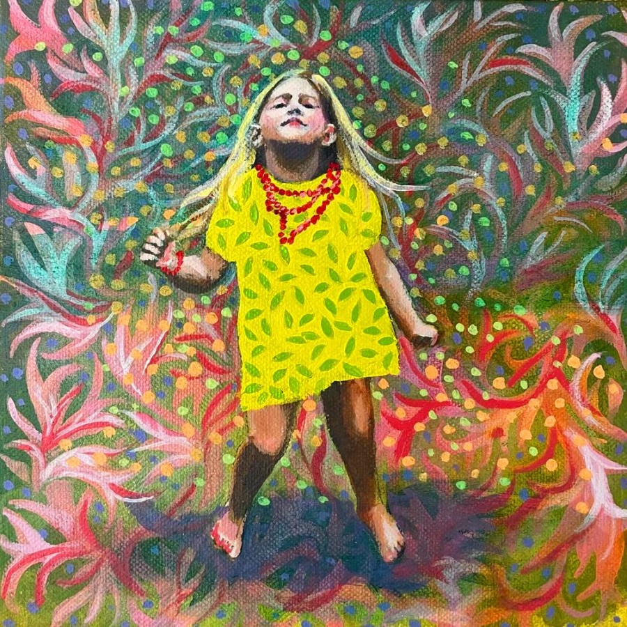 I also find rich colour irresistibly joyous. I try not to use all the colours in every painting, but in this series, I’ve given that tendency free rein. I can’t resist the pull of patterning either: every surface, if it stands still long enough, gets lit up with its own pattern. Eventually, I started inviting animals to join in the dance – lemurs, wild dogs and sheep all begged to have a go, and I let them, with a heart full of joy.
