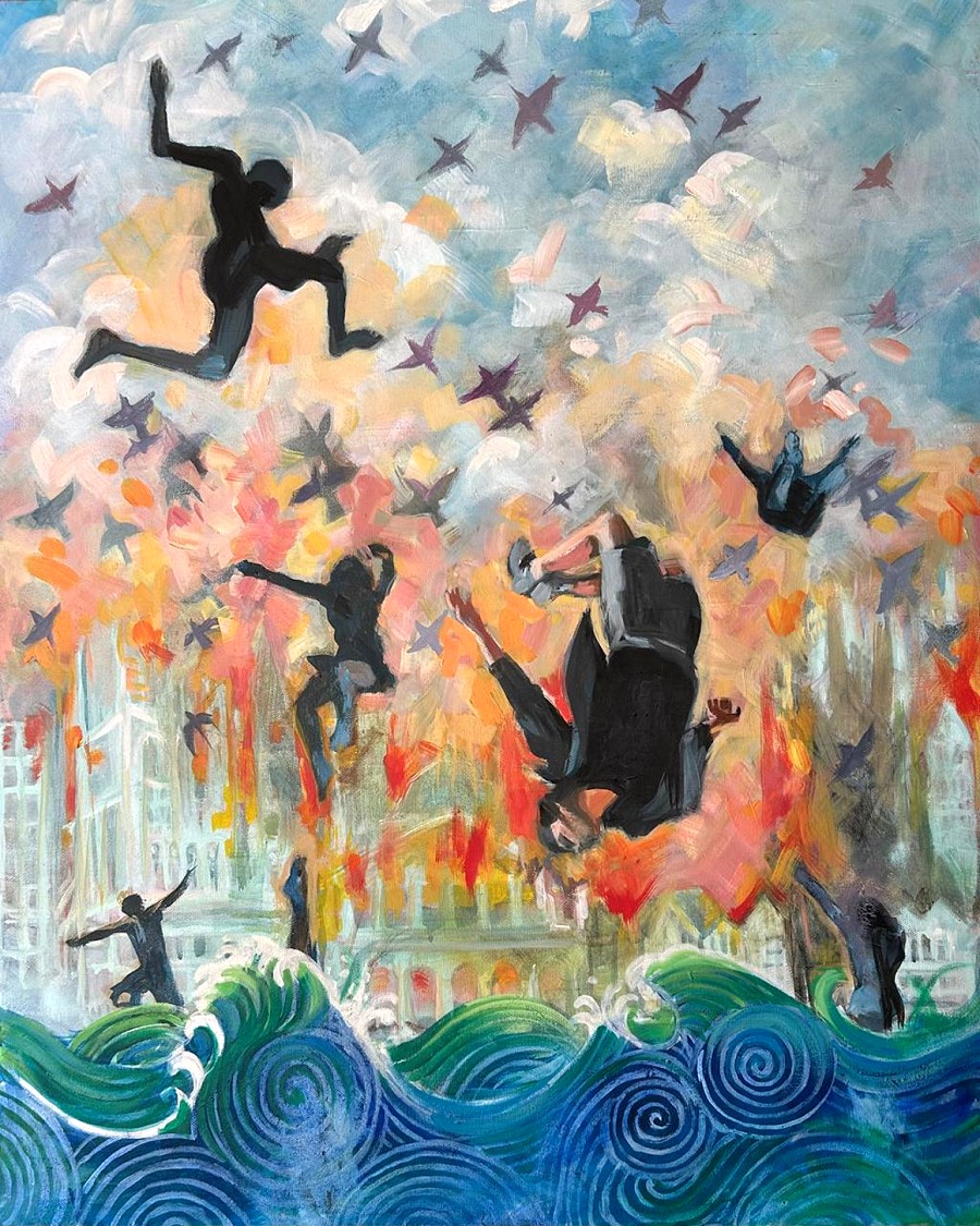 These paintings defy neat categorisation. Some of these are one-off experiments. Others might be the start of something. They’re moments of quirky intensity – something serendipitous or unexpectedly beautiful. They are stories, deeply personal or philosophical reflections, or just moments with my children on holiday. They reflect my ongoing commitment to notice what I notice, and show you what I notice, if you’re inclined to look.
